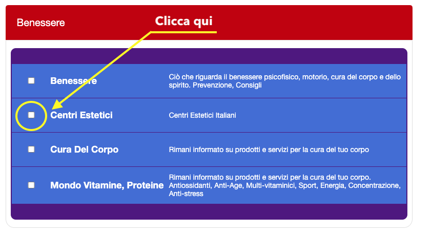 • 2 - Seleziona la casella: [Centri Estetici Centri Estetici Italiani]